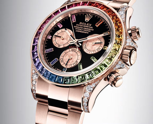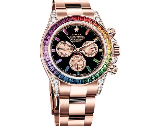 Brand: RolexModel: Cosmograph Daytona "Rainbow"Reference Number: 116595 RBOW Diameter: 40mmCase Material: Everose GoldDial Color:Black lacquer, cou...